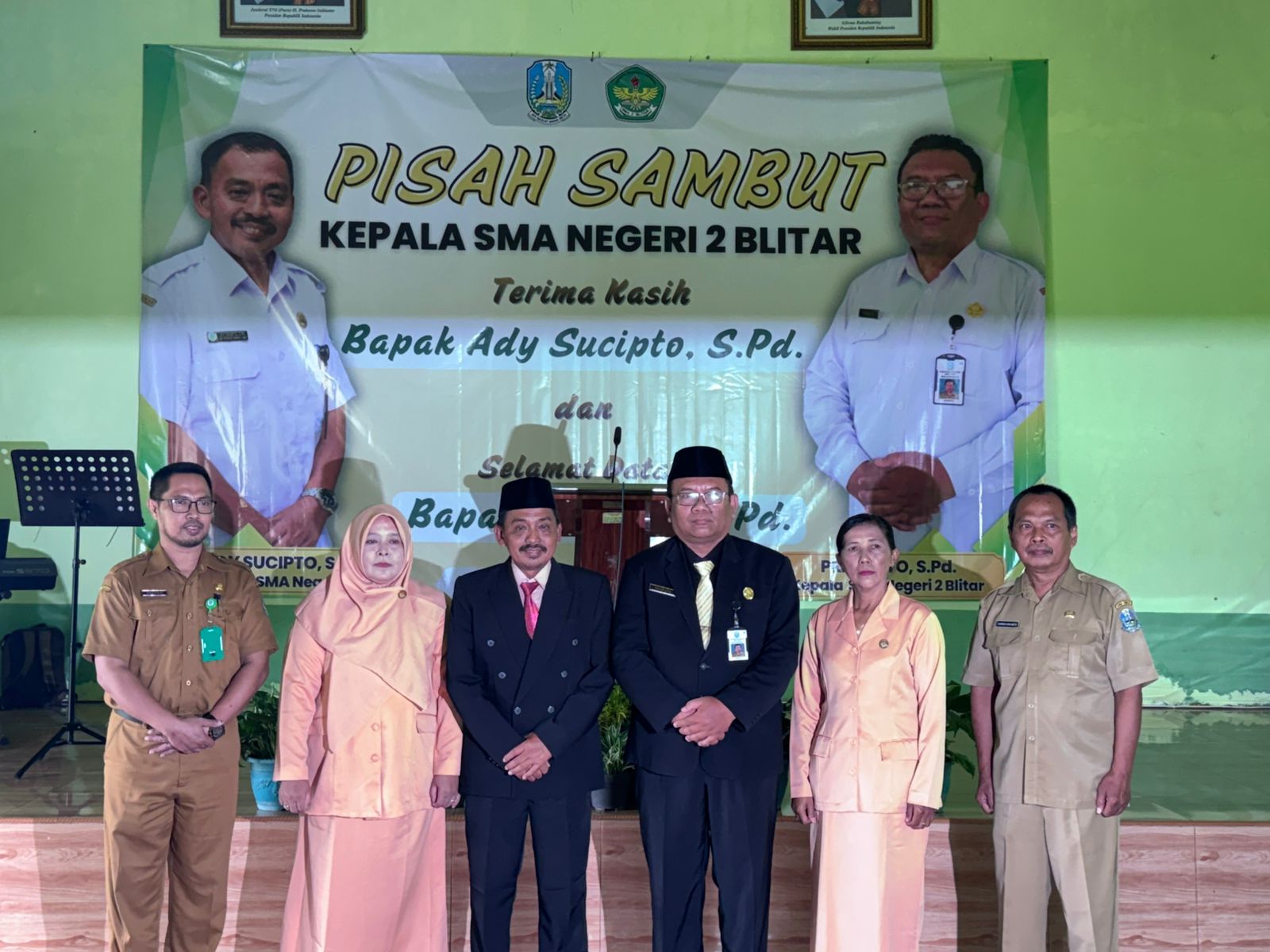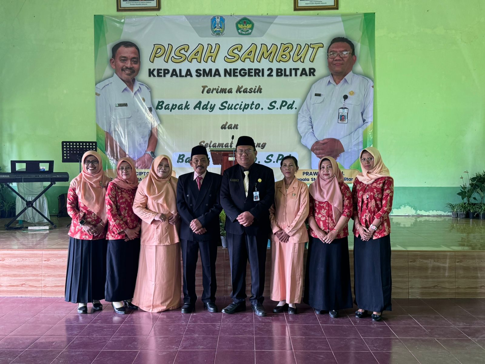 Sementara itu, sekolah juga menyambut dengan hangat Bapak Prawoto, S.Pd. sebagai Kepala SMA Negeri 2 Blitar yang baru. Dengan pengalaman panjang dalam dunia pendidikan, beliau diharapkan mampu membawa inovasi dan penguatan karakter sekolah.