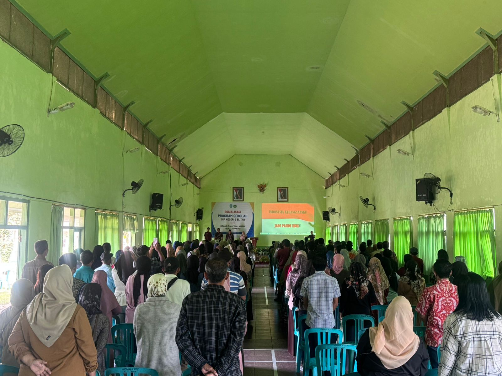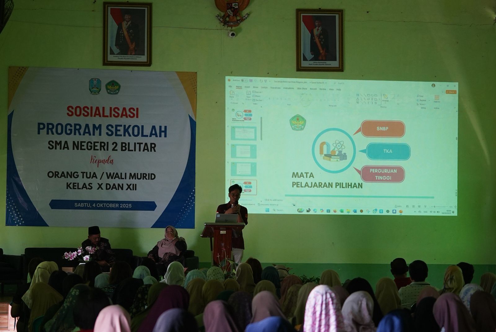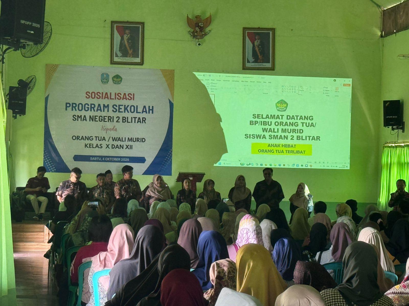 Blitar, smadaofficial – SMAN 2 Blitar menggelar sosialisasi program sekolah dengan melibatkan wali murid kelas X dan XII pada Sabtu, 4 Oktober 2025 di aula sekolah. Kegiatan ini dilaksanakan dalam dua sesi, yakni sesi pertama untuk wali murid kelas X pada pukul 07.30–09.30 WIB, serta sesi kedua untuk wali murid kelas XII pada pukul 10.00–12.00 WIB.